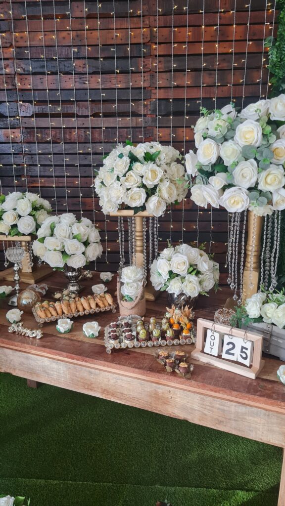 Detalhes decorativos que valorizam o ambiente, criando uma atmosfera encantadora que realça cada celebração com estilo único. Portanto, seu evento ganha ainda mais personalidade.